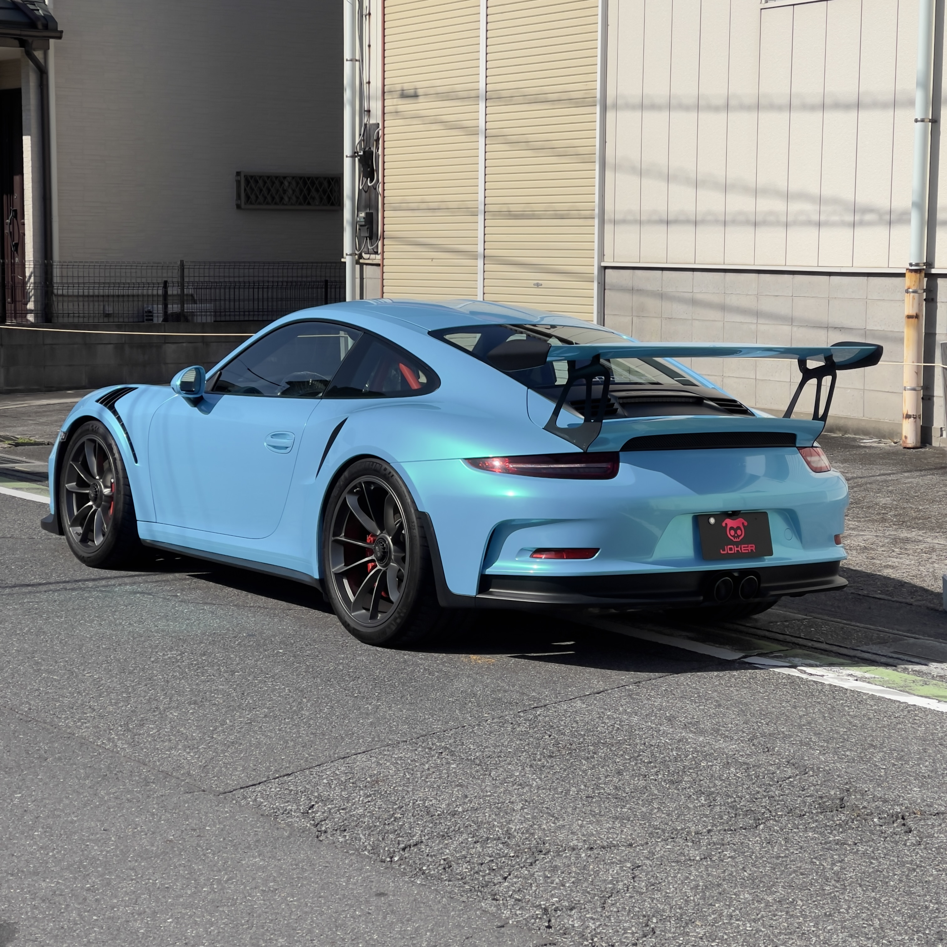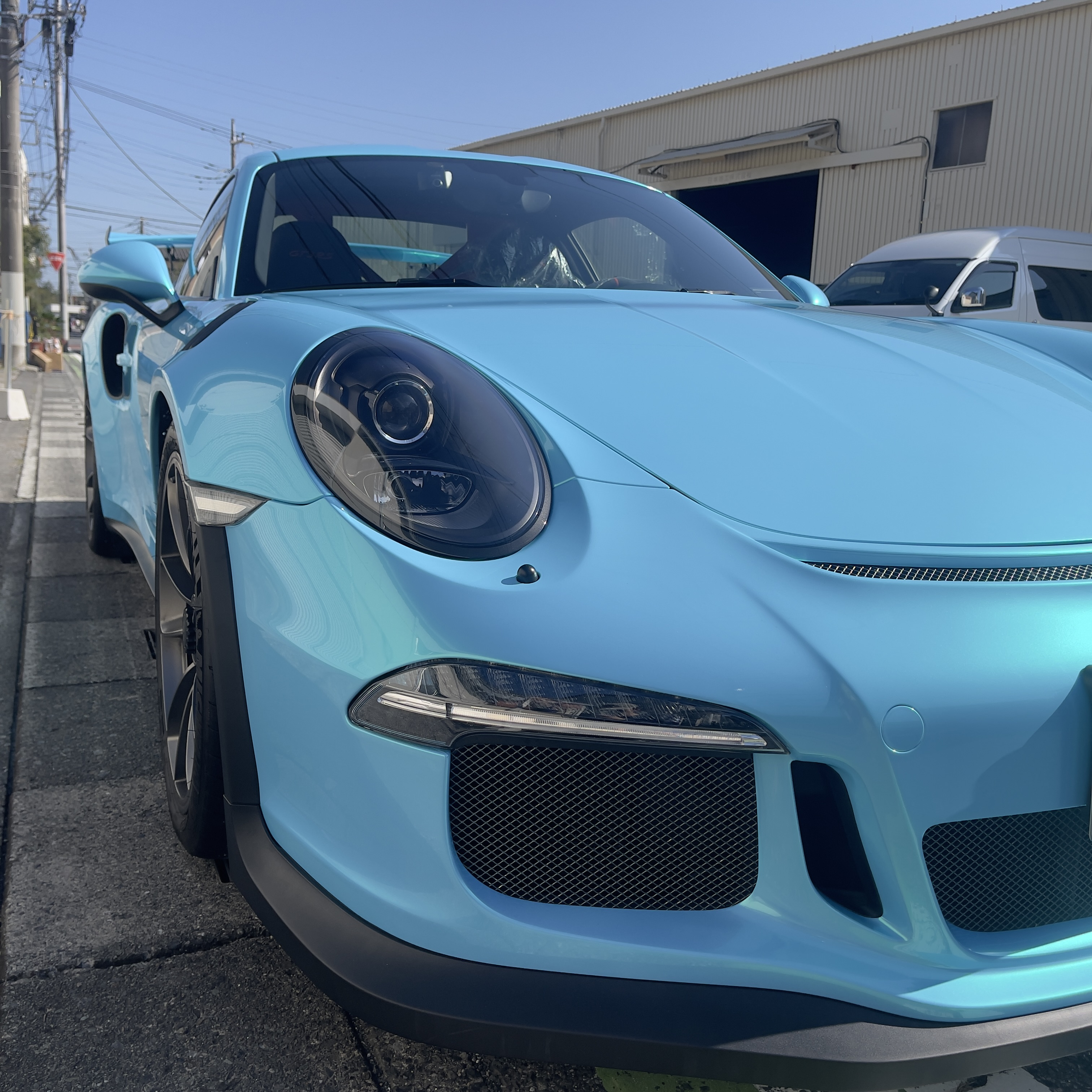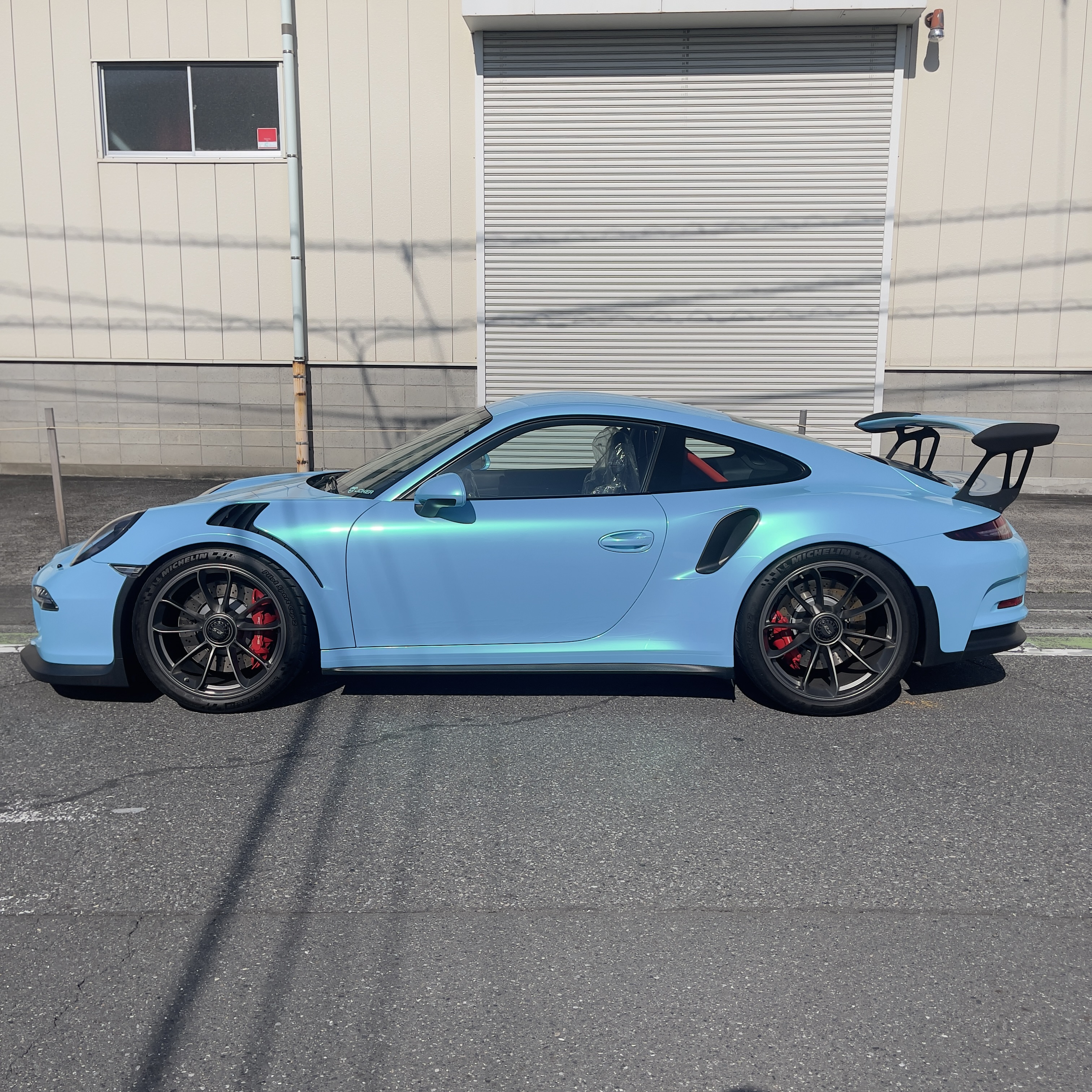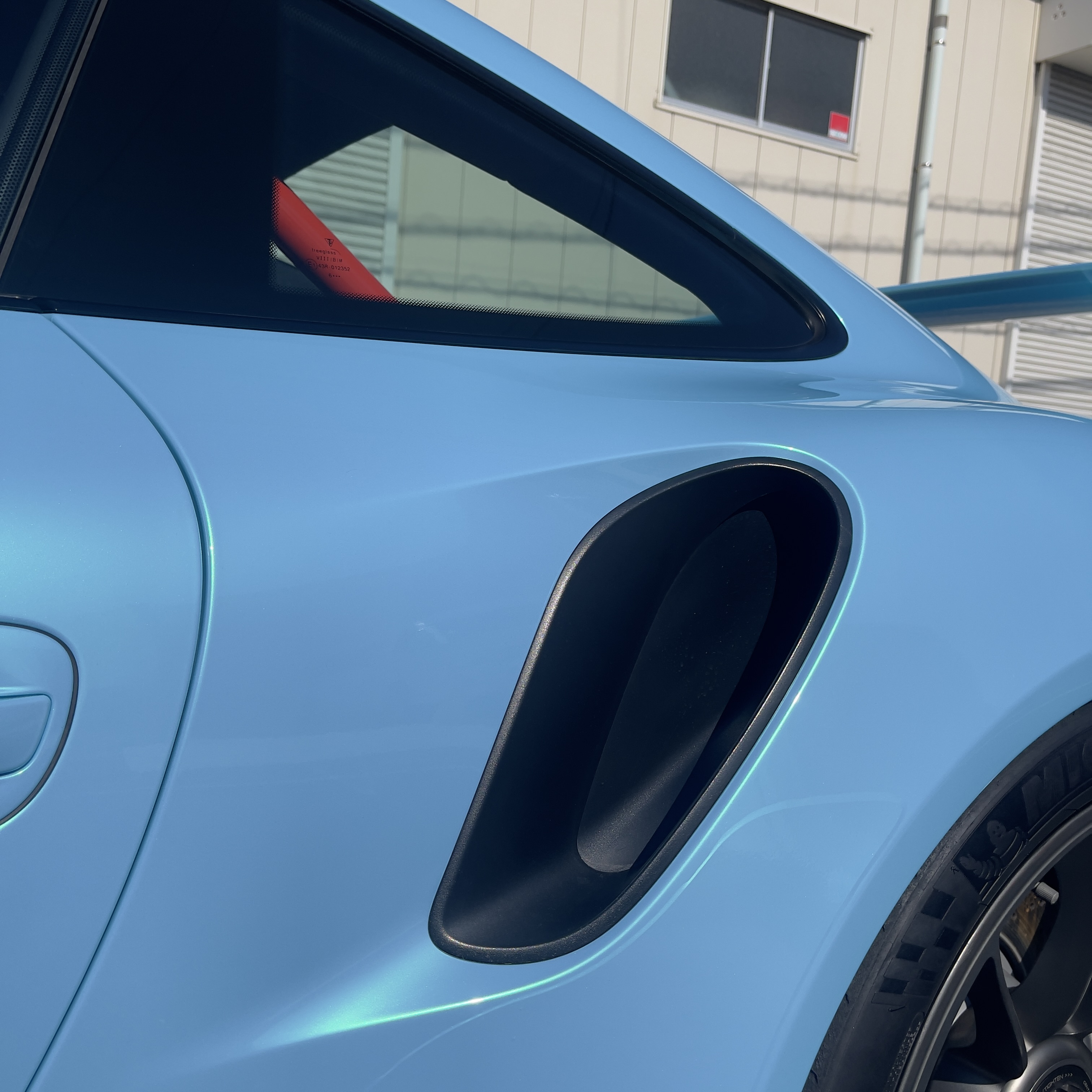 GT3はリアクォーターの形状がかなり特殊で面積も大きいため中々大変ですが、出来るだけ継ぎ目ができない施工を
